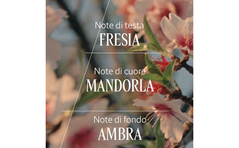 Una brume profumata per corpo e capelli che avvolge i sensi con un irresistibile accordo di mandorla e vaniglia, per una scia calda, luminosa e delicatamente gourmand.