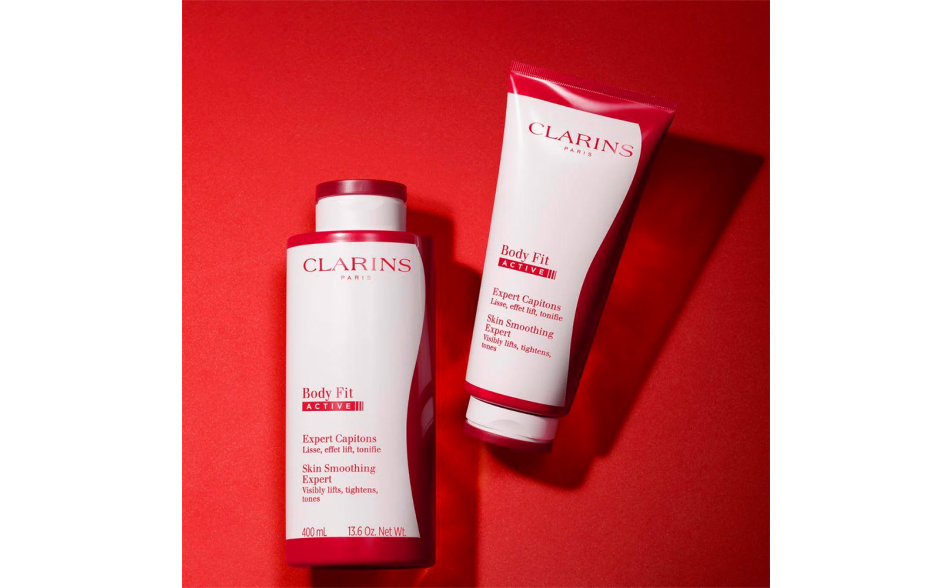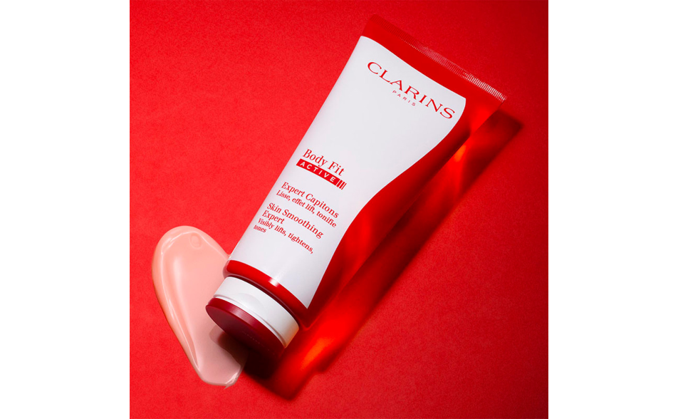 Il plus di Clarins: La texture sensoriale effetto ghiaccio, ispirata alla criolipolisi di Body Fit Active, completa l'azione del trattamento.
