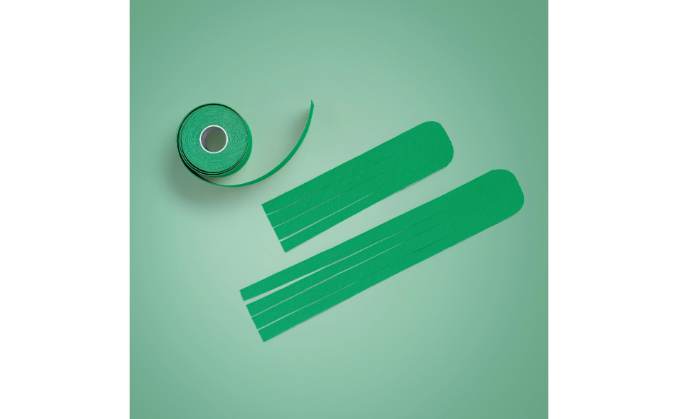 • Le 4 striscette vanno applicate una alla volta a forma di raggiera, senza tirare ma appoggiandole e facendole aderire alla pelle dolcemente;
