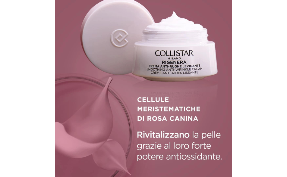 La sua formulazione avanzata è arricchita con Cellule Meristematiche di Rosa Canina Italiana, mirate a rivitalizzare la pelle e migliorare la sua trama cutanea.
