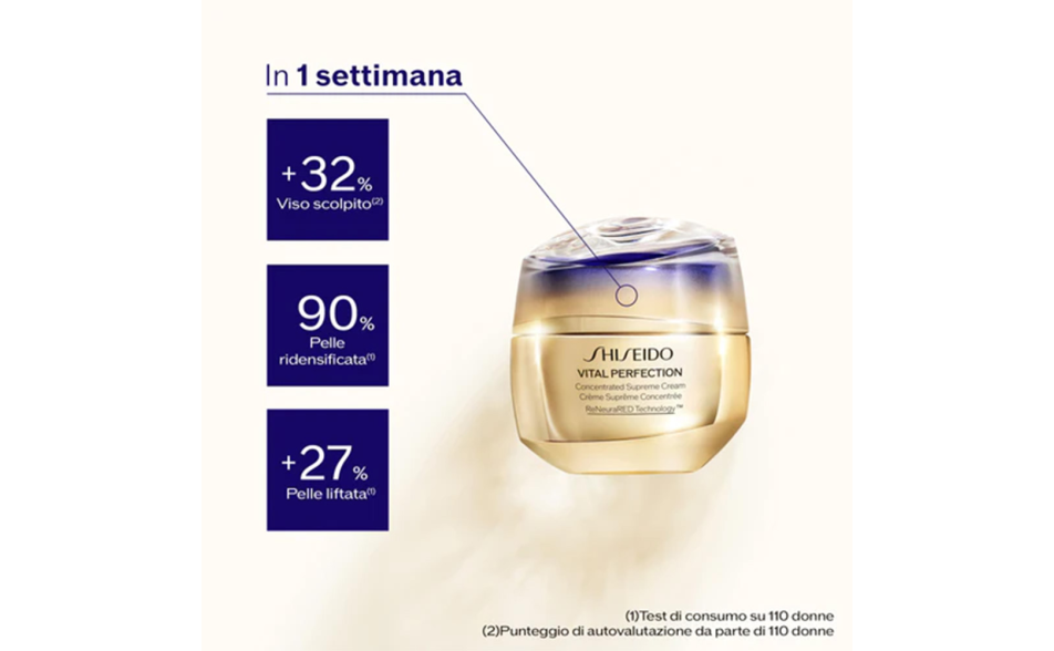 Esalta la tua bellezza con la crema concentrata suprema Vital Perfection di Shiseido, progettata per soddisfare le esigenze della pelle matura.