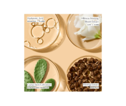 L'estratto di fioritura mattutina di ibisco ricco di antiossidanti agisce per proteggere la pelle dagli aggressori ambientali, mentre un'infusione di acido ialuronico ed estratto di cellule staminali di cactus forniscono fino a 72 ore di idratazione.