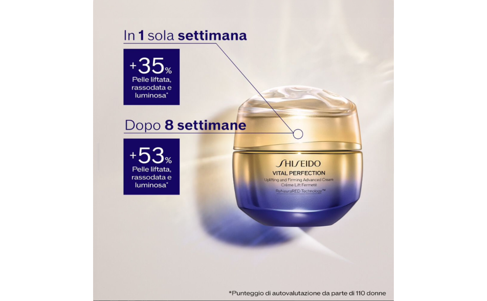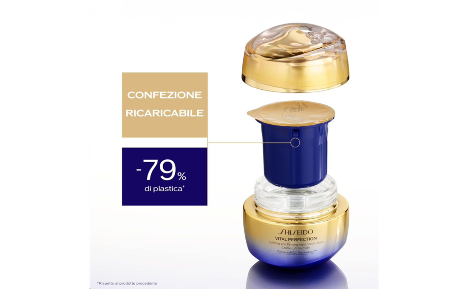 Shiseido Vital Perfection Uplifting and Firming Advanced Cream è la crema anti-età best seller di Shiseido, ora disponibile in un formato ricaricabile e potenziata con ingredienti avanzati per risultati superiori.
