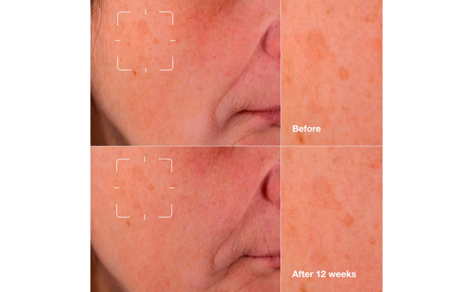 - Riduce visibilmente macchie solari, macchie dell’età e post-acne
