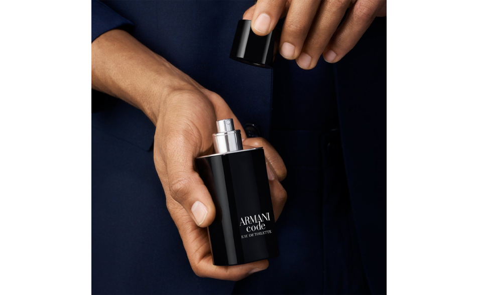 Il flacone di Armani Code Eau de Toilette è stato ridisegnato per riflettere un'identità moderna e audace. La sua forma squadrata e sinuosa, unita ai dettagli in nero elegante e riflessi argento, lo trasforma in un oggetto di design esclusivo. Oltre all'estetica, il flacone è progettato per essere ricaricabile in tutti i formati, in linea con l'impegno di Giorgio Armani per la sostenibilità.