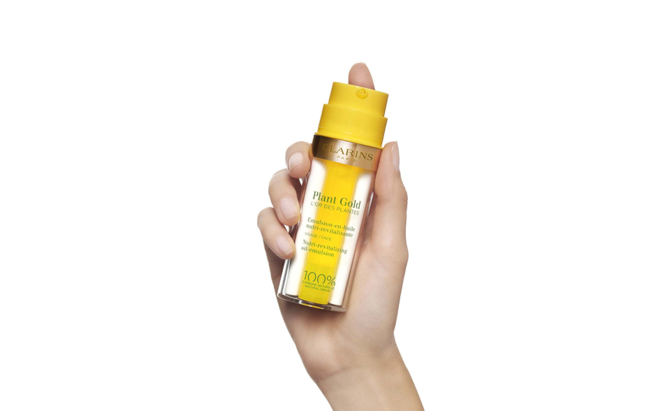 Ispirandosi ai gesti dei professionisti degli istituti, Clarins crea un innovativo doppio flacone dedicato a Plant Gold – l'Oro delle piante.