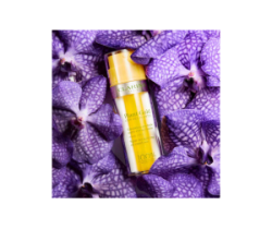 Una doppia formula inedita: l'iconico olio Huile Orchidée Bleue Clarins e un'emulsione fondente si uniscono all'applicazione in una texture leggera e non grassa, conferendo alla pelle comfort, vitalità e luminosità.
