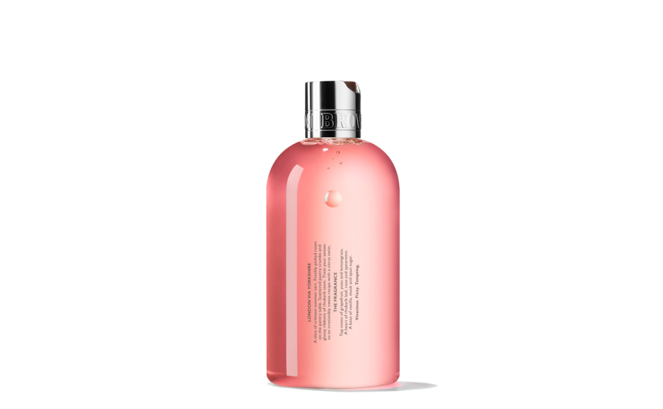 Questo lussuoso gel doccia è una delicatezza distintiva di foglia di rabarbaro e rosa con un tocco piccante di pompelmo.