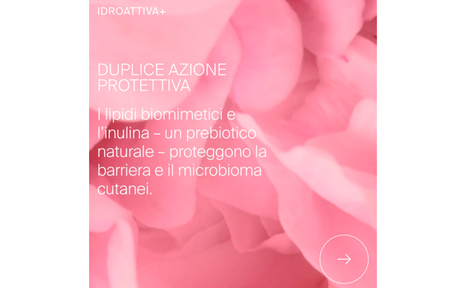 • IDROATTIVA+ COMPLEX: Questo complesso idratante e protettivo assicura un'idratazione intensa fino a 100 ore, preservando la barriera cutanea e proteggendo la pelle dagli agenti esterni dannosi.