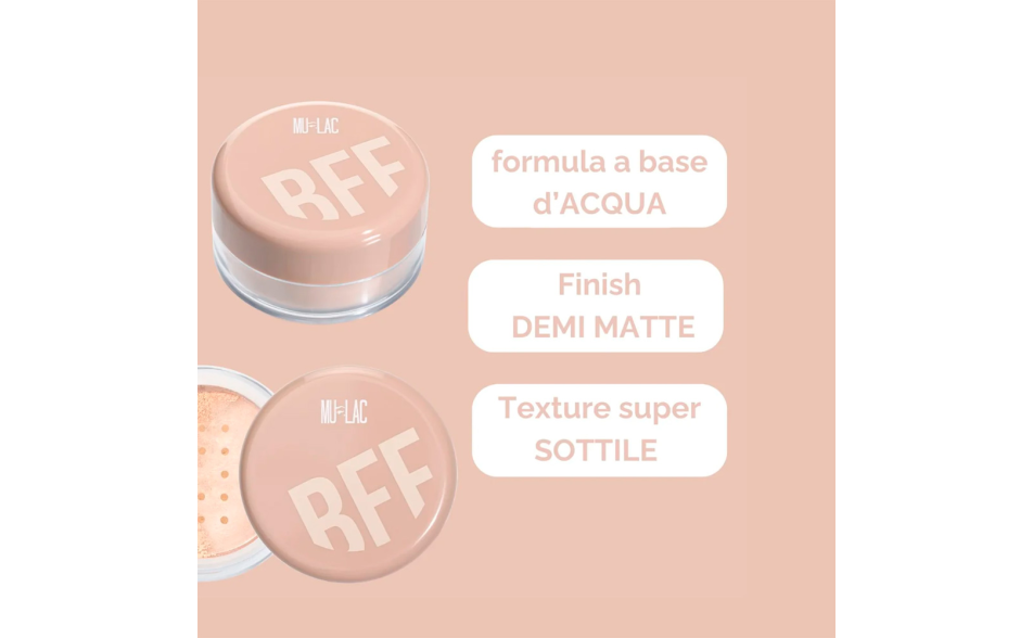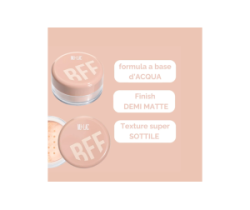 BFF H2O WEIGHTLESS LOOSE POWDER è una cipria in polvere libera innovativa, formulata con un'alta concentrazione d'acqua per offrire una sensazione di freschezza e leggerezza sulla pelle.