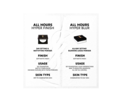 All Hours Hyper Blur è la nuova cipria couture in polvere libera che fissa, perfeziona e sfuma il trucco per tutto il giorno. Opacizza all’istante e controlla l’effetto lucido fino a 14 ore, assicurando un make-up a lunga tenuta con un finish soft matte*.