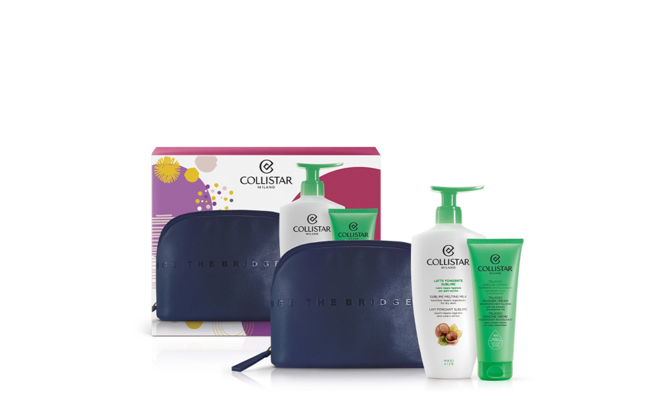 Riscopri il piacere di prenderti cura della tua pelle con il Cofanetto Sublime Beauty di Collistar e The Bridge. Un regalo perfetto per te o per chi ami, per una pelle morbida e idratata 365 giorni all'anno.