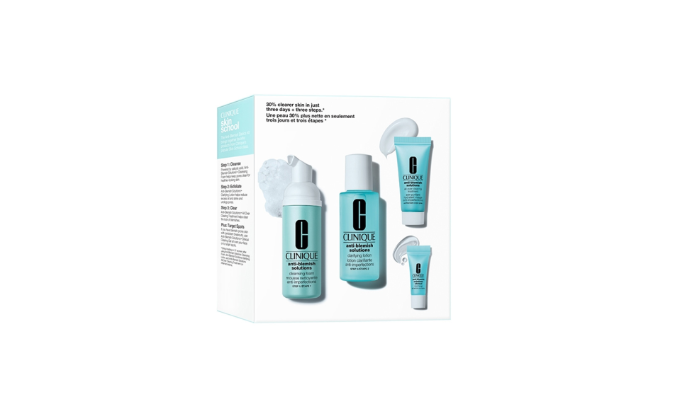 Questo kit contiene tre prodotti essenziali della linea Anti-Blemish Solutions™, appositamente formulati per pelli sensibili e soggette a imperfezioni.