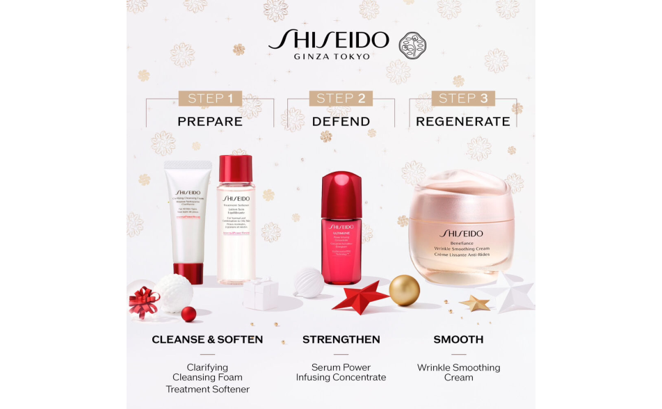 Scopri l'eccellenza Shiseido e regala la bellezza durante le feste! Questo set regalo anti-età è pensato per soddisfare le esigenze della pelle matura, offrendo un rituale completo per una pelle visibilmente liftata, scolpita e più compatta. Ideale per le donne sopra i 60 anni, combina trattamenti skincare di lusso e una fragranza unica per un’esperienza indimenticabile.