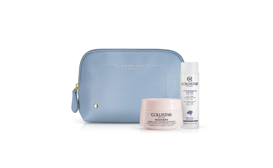 Cofanetto Collistar x The Bridge: crema anti-rughe rigenerante, detergente anti-età e protezione SPF 50, con una raffinata beauty-bag italiana. Per una pelle levigata e luminosa!