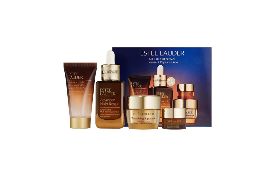 Scopri il Set Regalo Advanced Night Repair, una selezione esclusiva di trattamenti skincare, perfetto per ridurre linee e rughe e donare alla pelle un aspetto più giovane, sano e riposato. Questo set include il siero N°1 Advanced Night Repair in formato vendita, accompagnato da altri prodotti deluxe per una routine completa di bellezza rigenerante.