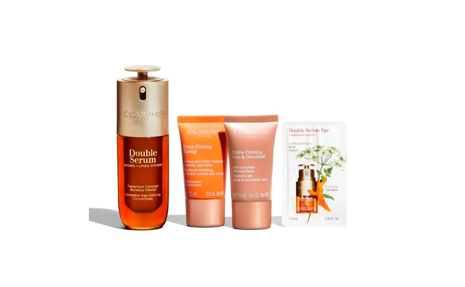 Scopri il potere della skincare avanzata con il cofanetto Clarins che unisce l’iconico Double Serum e i trattamenti Extra-Firming per una pelle visibilmente più giovane, levigata e luminosa.