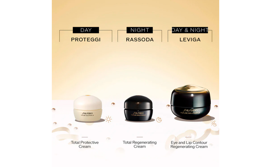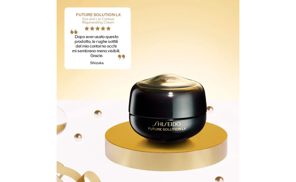 Per queste feste, regala(ti) qualcosa di straordinario con Shiseido. Questo esclusivo cofanetto Future Solution LX offre un trattamento completo per illuminare, rigenerare e proteggere l’area occhi e labbra, valorizzando la bellezza senza tempo della pelle.