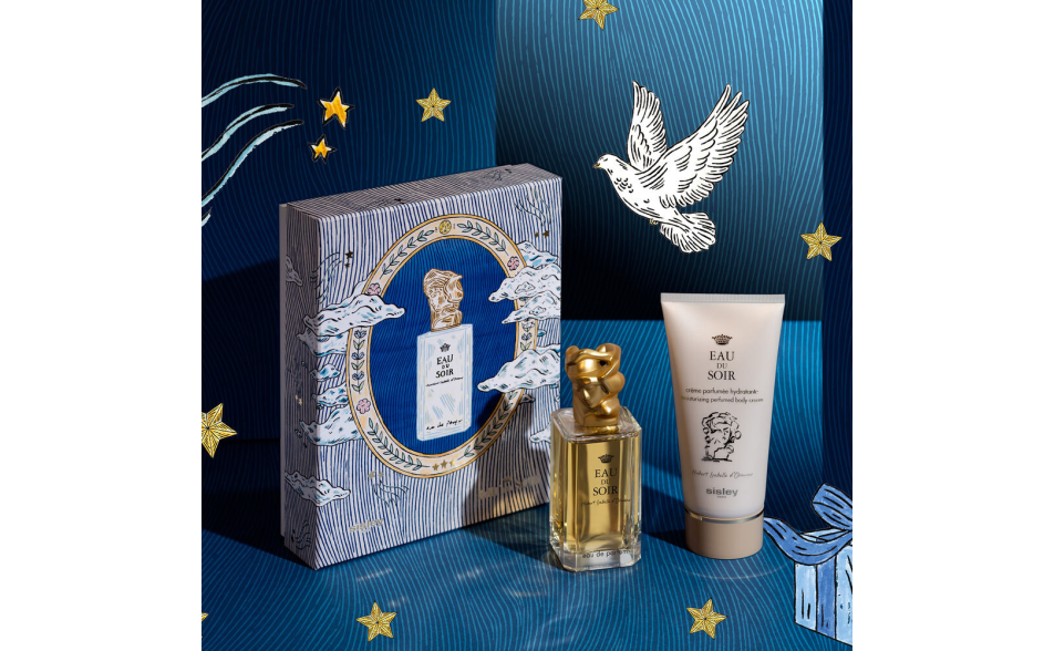 Vivi un'esperienza olfattiva unica con Eau du Soir, una fragranza che unisce armoniosamente note floreali, speziate e cipriate per un profumo elegante e senza tempo. Questo set regalo in edizione limitata, illustrato dall'artista britannica Fee Greening, celebra l'iconica fragranza di Sisley, evocando l'atmosfera magica di una passeggiata serale nei giardini del Palazzo dell'Alcázar di Siviglia, tra stelle scintillanti e nuvole delicate.
