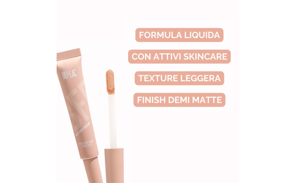 Il BFF concealer è un correttore dall'elevata versatilità, caratterizzato da una texture leggera e idratante che offre un immediato effetto di freschezza e luminosità allo sguardo.