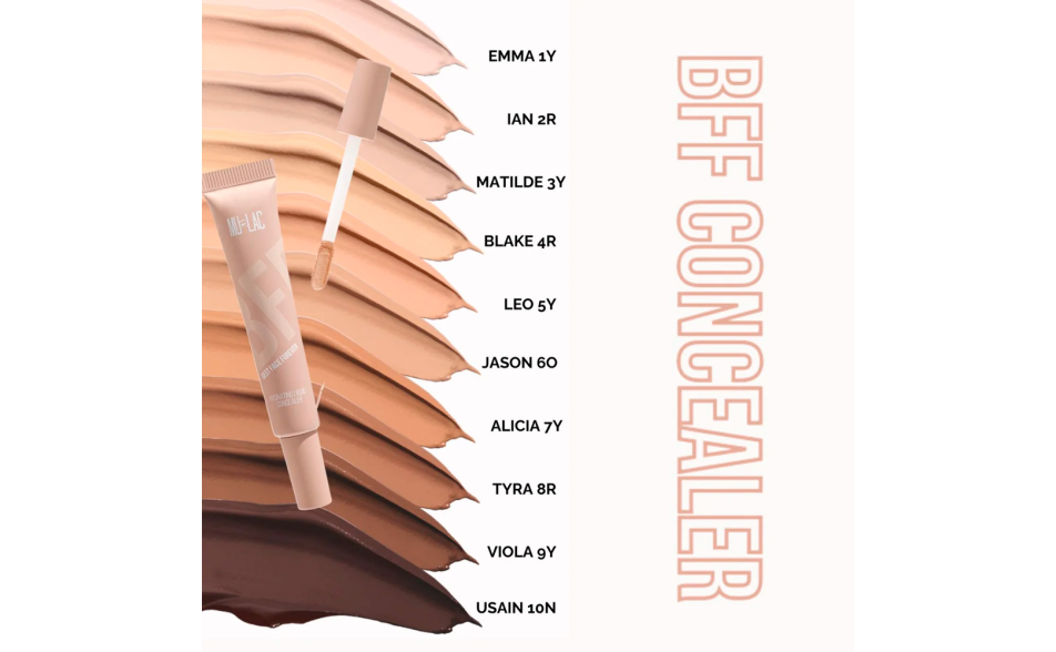 Disponibile in 10 diverse tonalità, il BFF concealer è in grado di soddisfare le esigenze di tutte le carnagioni, dalle più scure alle più chiare.