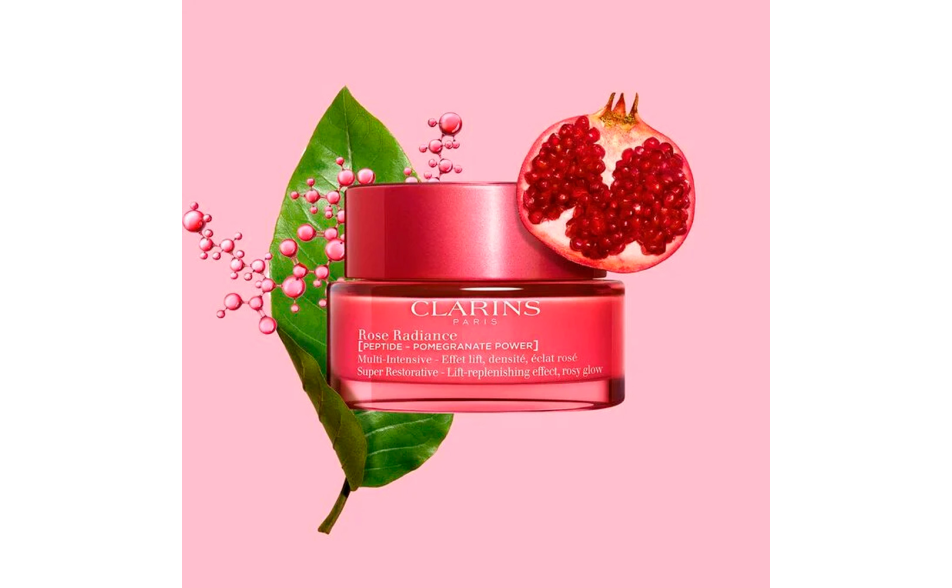 Inoltre, Clarins ha incluso estratti di ginestra bio e di harungana bio, con proprietà lifting e densificanti comparabili al retinolo, per contrastare il rilassamento cutaneo causato dalla diminuzione degli ormoni durante la menopausa.