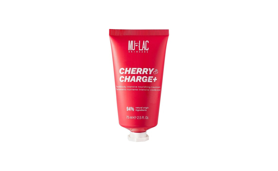 Cherry charge+ con la sua texture ricca ed avvolgente, con burro di karitè e olio di argan fermentato, nutre, idrata e calma le irritazioni, donando alla pelle morbidezza e sollievo già dalla prima applicazione.