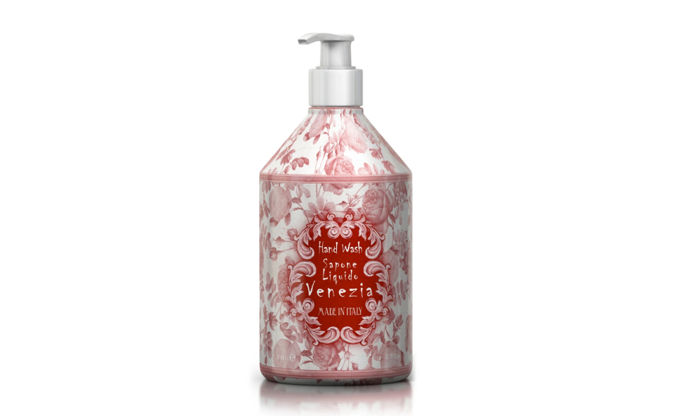 Il sapone liquido Venezia della linea Maioliche Art Edition grazie alla sua formulazione extra ricca ma dalla texture leggera lascia le mani piacevolmente profumate.