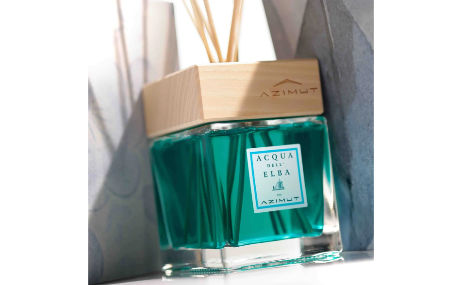 Pensando a coloro che vivono il mare, Acqua dell'Elba ha creato il Profumatore d'Ambiente Acqua dell'Elba - Azimut. Una fragranza mediterranea appositamente creata per Azimut, con note di bergamotto, mirto, rosmarino, cisto di mare, lentisco e fichi d'India. Questo accordo fresco e marino è pensato per coloro che vivono e desiderano assaporare l'essenza autentica della vita marina.