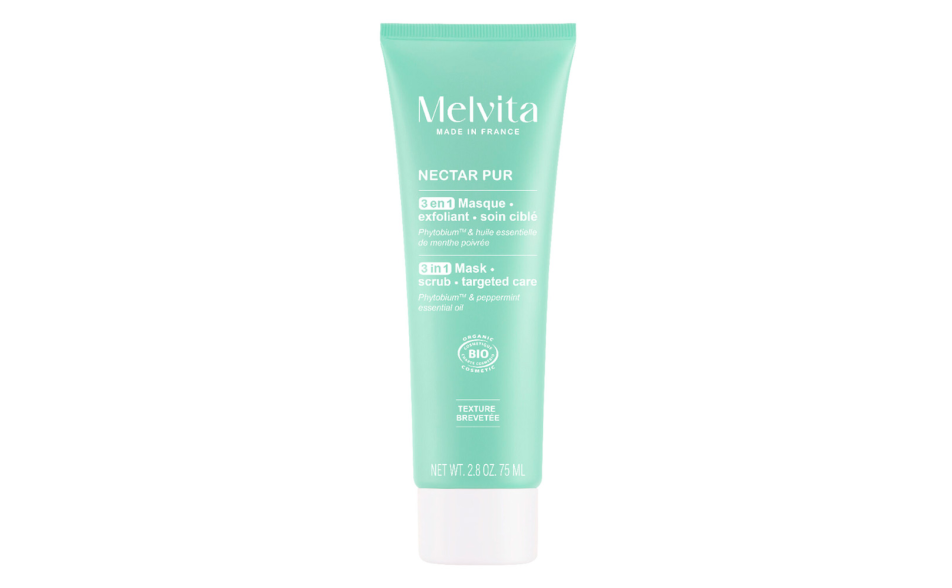 Melvita Nectar Pur Organic 3-in-1 è una maschera viso biologica con tripla azione purificante, esfoliante e riequilibrante, ideale per trattare imperfezioni, pori dilatati e grana irregolare.