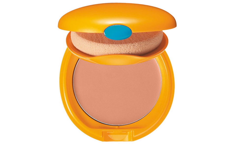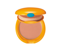 Fondotinta abbronzante compatto con filtro solare che assicura un effetto trucco perfetto.
