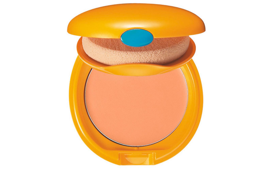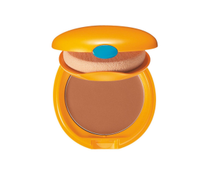Fondotinta abbronzante compatto con filtro solare che assicura un effetto trucco perfetto.