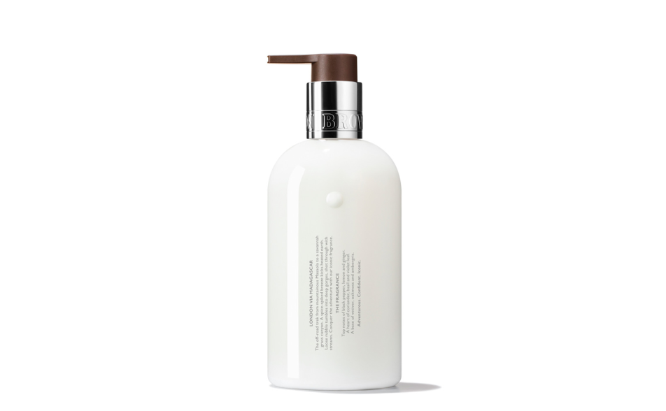 Riscalda i tuoi sensi con la lozione idratante per il corpo al pepe nero, zenzero e vetiver di Molton Brown.