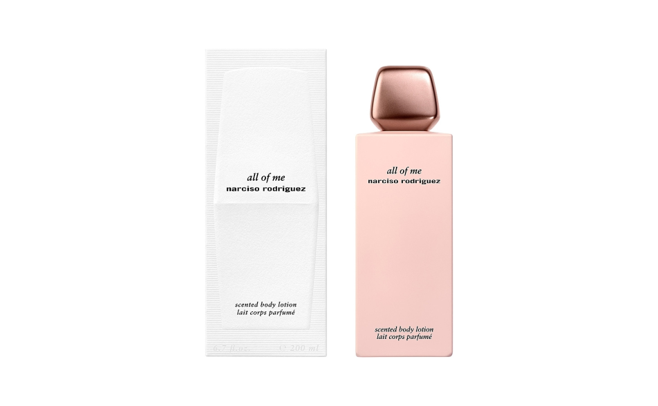 Questa lozione corpo vellutata idrata intensamente la pelle, lasciandola morbida e profumata con la fragranza distintiva All of Me, la nuova creazione di Narciso Rodriguez.