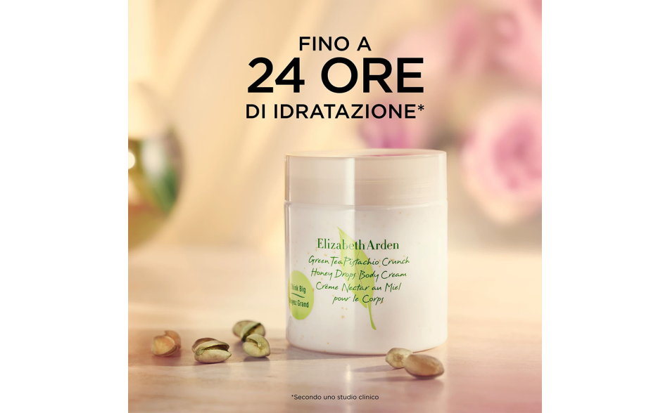 Immergiti in una delizia sensoriale con la NUOVA Green Tea Pistachio Crunch Honey Drops, una crema corpo agrumata, gourmand e muschiata arricchita con gocce di miele. Questa formula ultra leggera ma ricca promette fino a 24 ore di idratazione, lasciando la pelle morbida e nutrita.