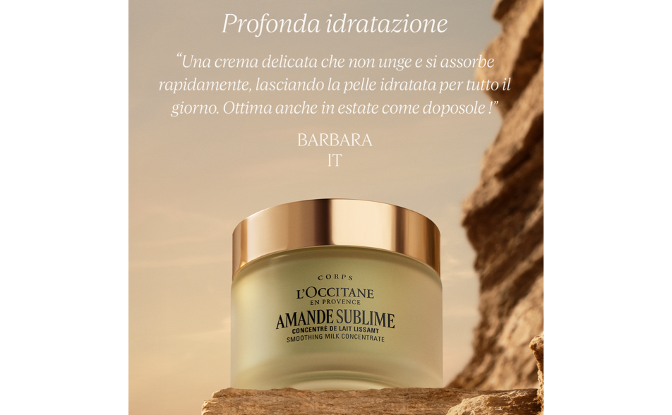 La Crema Concentrata al Latte di Mandorla è una crema corpo iconica e best seller, dalla texture ricca e vellutata che si fonde sulla pelle, nutrendola intensamente e lasciandola morbida, liscia e setosa.