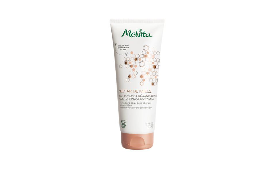 Arricchito di miele di timo bio noto per le proprietà nutrienti e riparatrici miracolose, il latte è un concentrato che ridona comfort e avviluppa il corpo in una nuvola di benessere e idratazione.