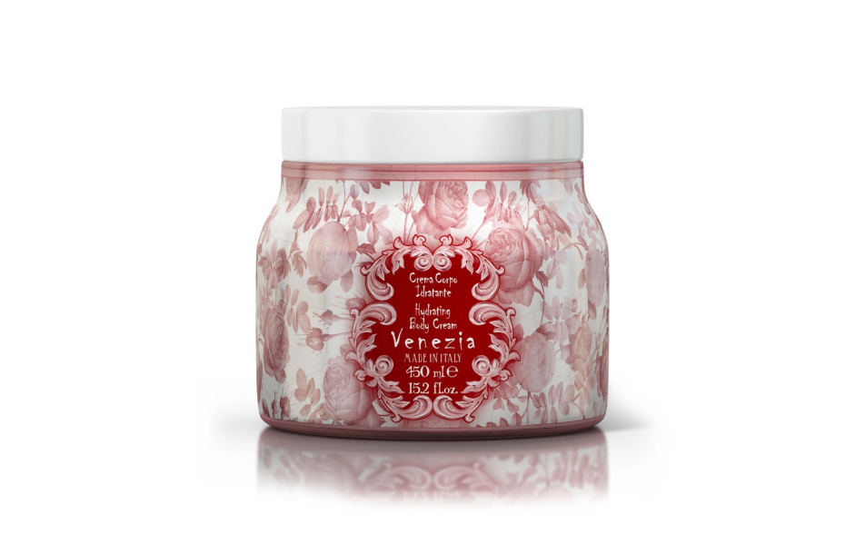 La crema corpo Venezia della linea Maioliche Art Edition ha una formula ricca e idratante e lascia la pelle piacevolmente e delicatamente profumata.