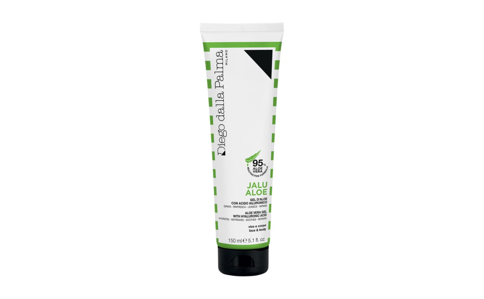 Gel puro di aloe e acido ialuronico, potenziato con attivi ad azione lenitiva e protettiva.