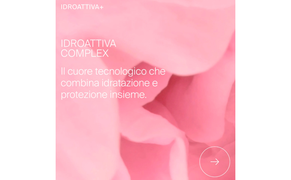 Il cuore tecnologico e botanico della crema include l'IDROATTIVA+ COMPLEX, un attivo idratante a base di zuccheri con inulina, che promette un'idratazione intensa fino a 100 ore.