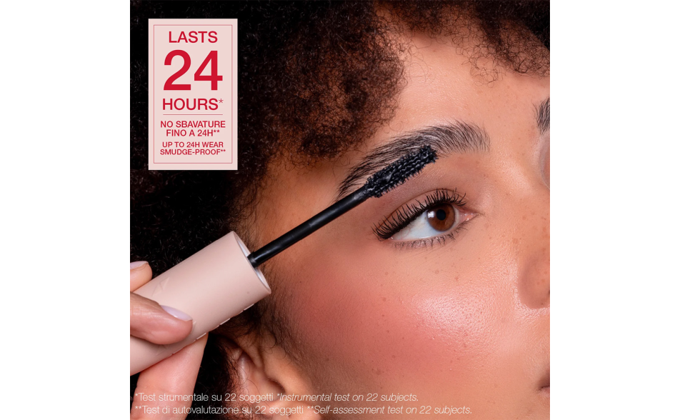 La sua formula cremosa garantisce un’applicazione scorrevole, avvolgendo ogni ciglia senza appesantire.