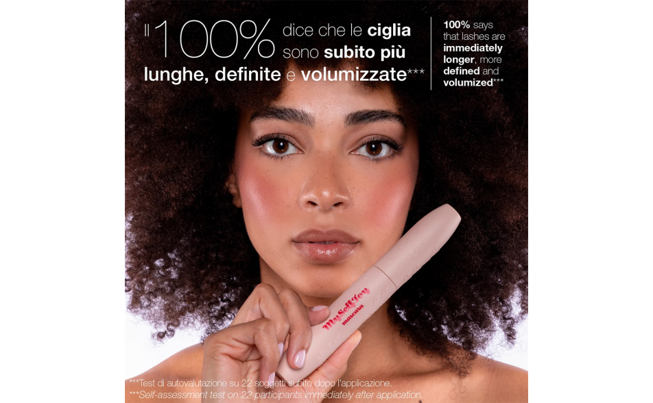 Il mascara MySelfToy rivoluziona il tuo make-up con un'azione 6D che dona alle ciglia volume, lunghezza e definizione, senza grumi né sbavature. La sua formula innovativa permette un’applicazione modulabile, perfetta per ottenere l’intensità desiderata.