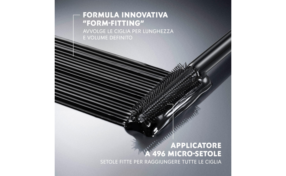 Il mascara allungante dal volume definito è studiato per donare ciglia visibilmente più lunghe, incurvate e perfettamente separate. Grazie alla sua formula avanzata e allo speciale scovolino ad alta precisione, assicura ciglia fino a 1,6 volte più lunghe*, volume modulabile senza grumi e un intenso effetto lift a lunga tenuta fino a 24 ore**.