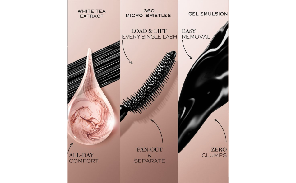 Questo mascara rappresenta una nuova generazione di prodotti per ciglia, in grado di donare un volume straordinario ad ogni singola ciglia, per un effetto "ciglia a ventaglio".