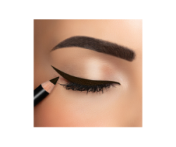 Modo d'uso: effettuare piccoli tratteggi in prossimità del bordo cigliare, quindi sfumare con un pennello piatto a “lingua di gatto” (n°05 o n°08) per ombreggiature più ampie, morbide e naturali.