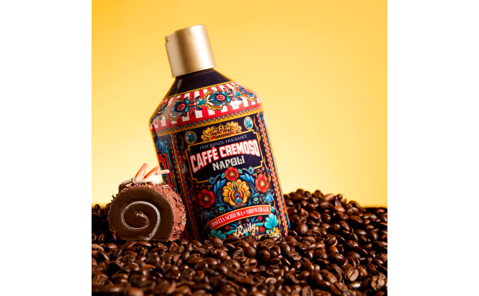 - Doccia Schiuma: una schiuma soffice che deterge con delicatezza, lasciando la pelle morbida e avvolta da un profumo caldo di chicchi di caffè, zucchero grezzo e vaniglia.