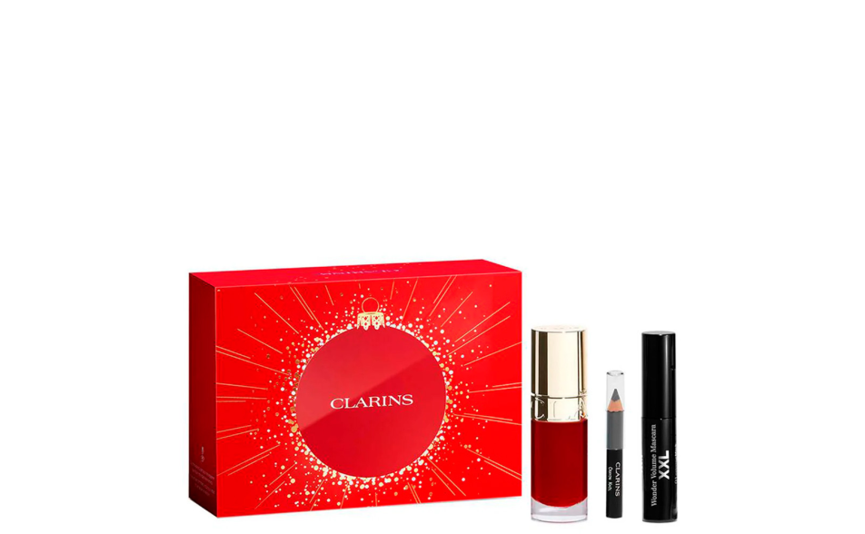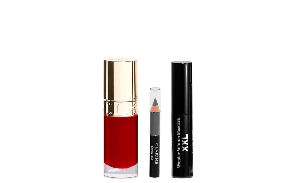 Un trio firmato Clarins per uno sguardo intenso e labbra irresistibilmente luminose.