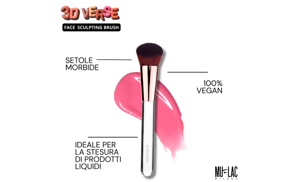 Il manico trasparente, elegante e moderno, si abbina perfettamente al design dei nostri 3D VERSE, completando il look della tua collezione make-up.