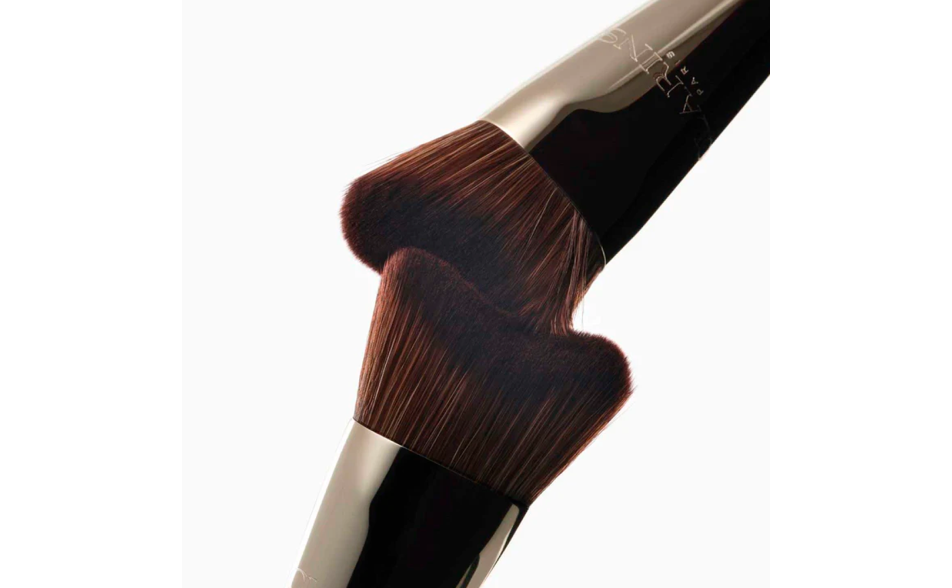 Un pennello make-up eccezionale con una forma unica ispirata al gua sha, che segue perfettamente tutti i contorni del viso.