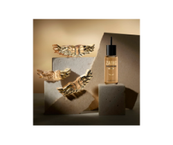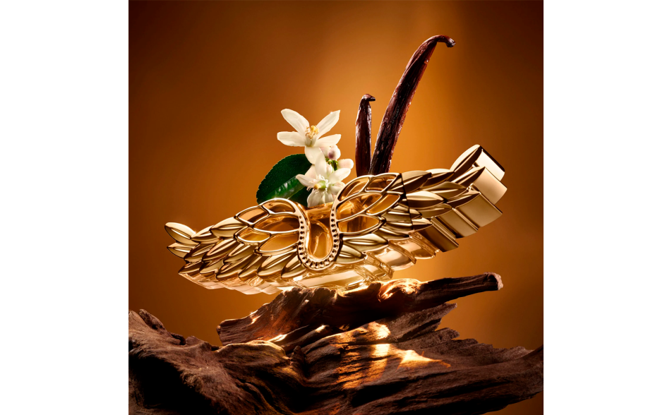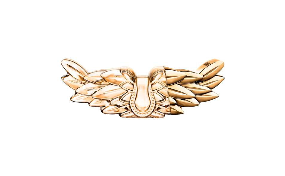 Il flacone iconico a forma di ali si veste di un elegante oro metallico, trasformandosi in un vero e proprio accessorio di stile. Il design ricaricabile unisce estetica e sostenibilità.